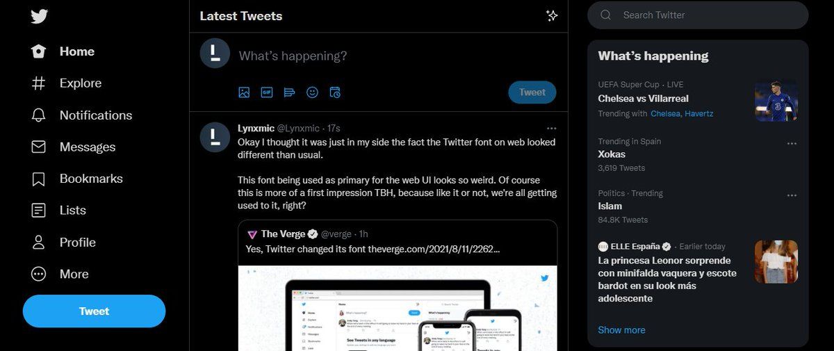 1. Okay I thought it was just in my side the fact the Twitter font on web looked different than usual. This font being used as primary for the web UI looks so weird. Of course this is more of a first impression TBH, because like it or not, we're all getting used to it, right? @verge/1425532888393596936