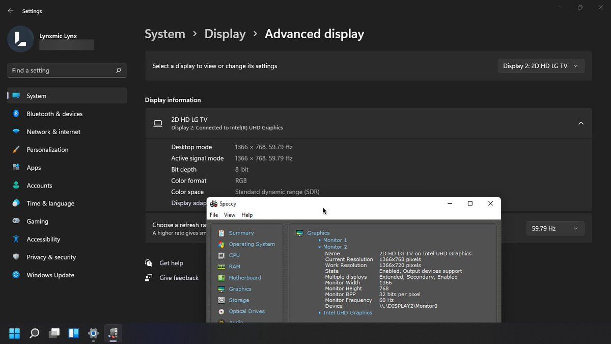 Replaced my Philips 220E monitor today (it recently died after 13 years of use), with a 1366x768 LG TV that I had lying around unused, as a second screen for my main PC.