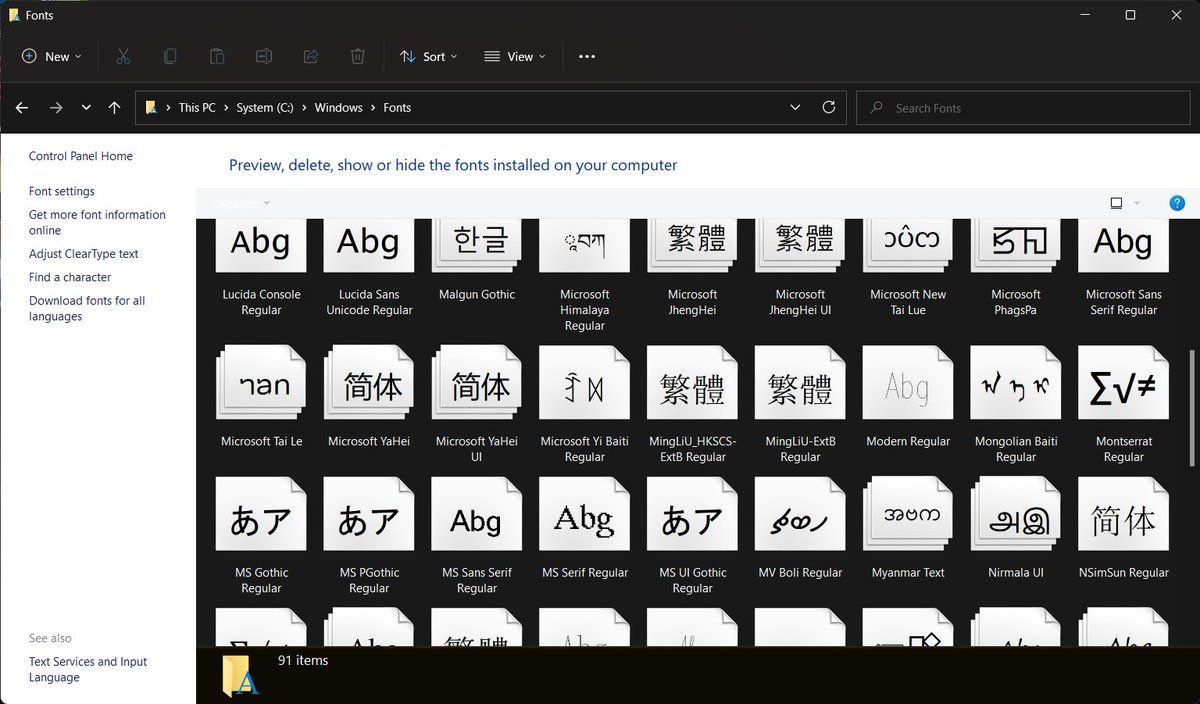 Gotta admire the old Fonts folder icon and the dark-light-dark theme...