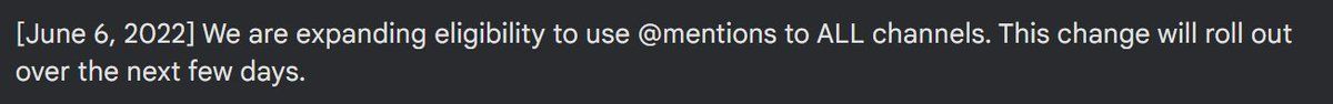 Back to this mini-thread, just almost a month later, YT announced that they had been indeed rolling out mentions to 100% of channels. So this was intentional. Just that they've been mostly quiet about it this time. @Lynxmic/1525587634147536898