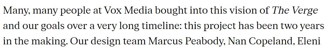 "This project has been two years in the making" At this point, considering the backlash plaguing The Verge's new website, we could say these two years were wasted here (kinda). Pre-rollout usability tests would have helped, but now it'll take a while to get used to the new site. @Lynxmic/1569740573271261184